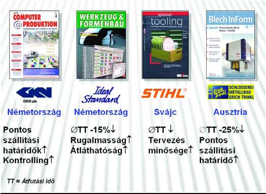 ütemezésben és a gyártási adatok összesítésében. Költségeiket alaposan csökkentették a rövidebb átfutási idők, a