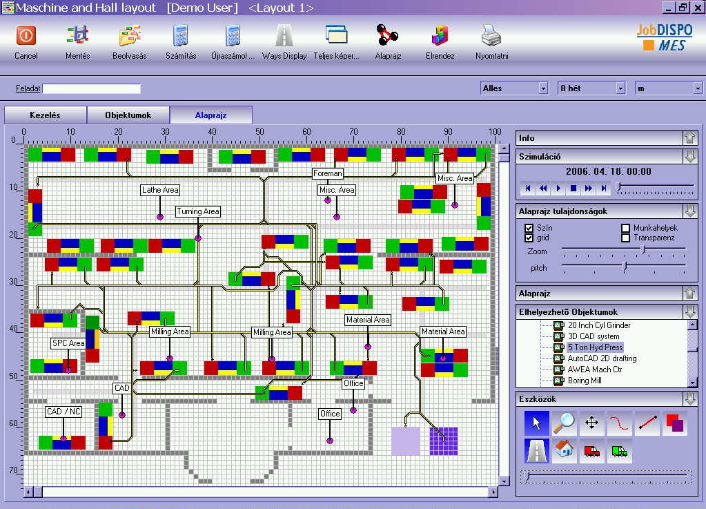 - A JobDISPO FAP elemzi a termelést és javaslatokat tesz az elrendezés optimalizálására